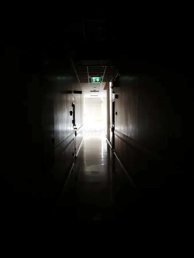 On était paniqués ! C’est quand on a vu la porte s’ouvrir en grand qu’on a compris que c’était maintenant ou jamais ! On a filé en courant et on s’est retrouvés dans le noir du couloir. Les lampes se sont éteintes d’un coup et même la lampe de la caméra ne voulait plus rien entendre. Lucas avait beau injurier le matos de son père, ça ne changeait rien ! On n’était pas tirés d’affaire, même nos portables ne fonctionnaient pas. Parcourir ce couloir avec nos lumières avait été flippant, mais retourner dans le hall des urgences sans aucune source lumineuse nous semblait particulièrement effrayant. On s’est serrés les uns contre les autres, et on a commencé à avancer lentement, très lentement. On entendait des râles rauques, nos souffles paniqués, et le vent qui soufflait dehors. Et d’où pouvait venir ces râles ? On tâtait les murs pour avancer sans se cogner et évidemment on tombait parfois sur des poignées de porte, qui s’ouvraient en grinçant et nous dévoilaient des visions horribles de patients attachés sur leur brancard et qui essayaient de partir. L’image était fugace à chaque fois, comme un flash, elle était à la fois identique et distincte. C’était la même disposition des objets, mais la personne était différente. On en a vu quatre ou cinq d’affilée et on en était au stade de la terreur pure et simple. On agissait comme des automates en mode survie. Il fallait qu’on sorte de là avant de devenir fous !